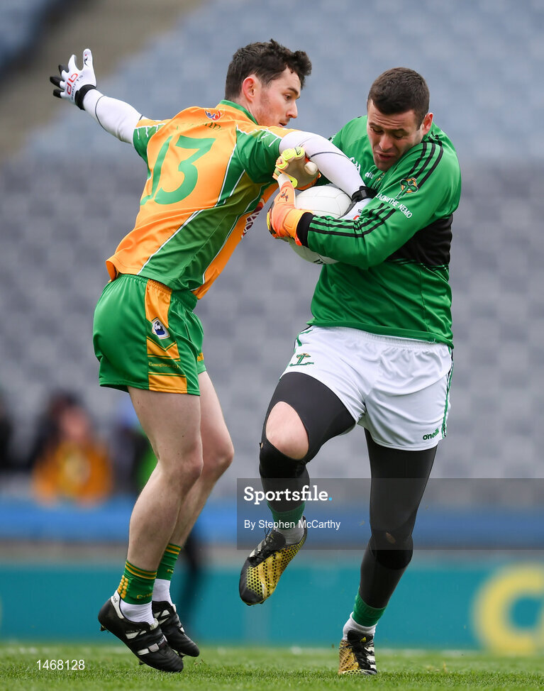 17 March 2018: Micheál Aodh Martin of Nemo Rangers in action against Ian Burke of Corofin during the AIB GAA Football All-Ireland Senior Club Championship Final match between Corofin and Nemo Rangers at Croke Park in Dublin. Photo by Stephen McCarthy/Sportsfile