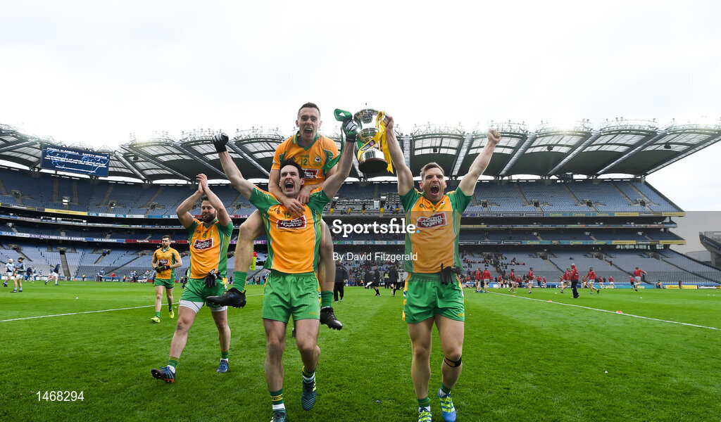 17 March 2018: Michael Farragher, left, and Ciarán McGrath of Corofin celebrate following the AIB GAA Football All-Ireland Senior Club Championship Final match between Corofin and Nemo Rangers at Croke Park in Dublin. Photo by David Fitzgerald/Sportsfile