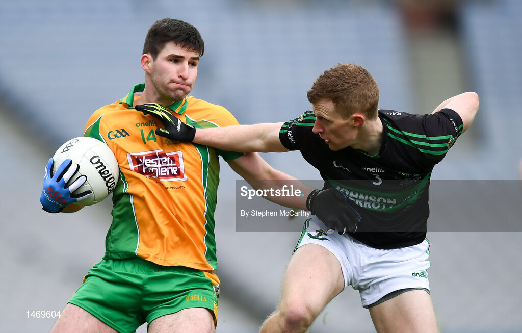 17 March 2018: Martin Farragher of Corofin in action against Aidan O'Reilly of Nemo Rangers during the AIB GAA Football All-Ireland Senior Club Championship Final match between Corofin and Nemo Rangers at Croke Park in Dublin. Photo by Stephen McCarthy/Sportsfile