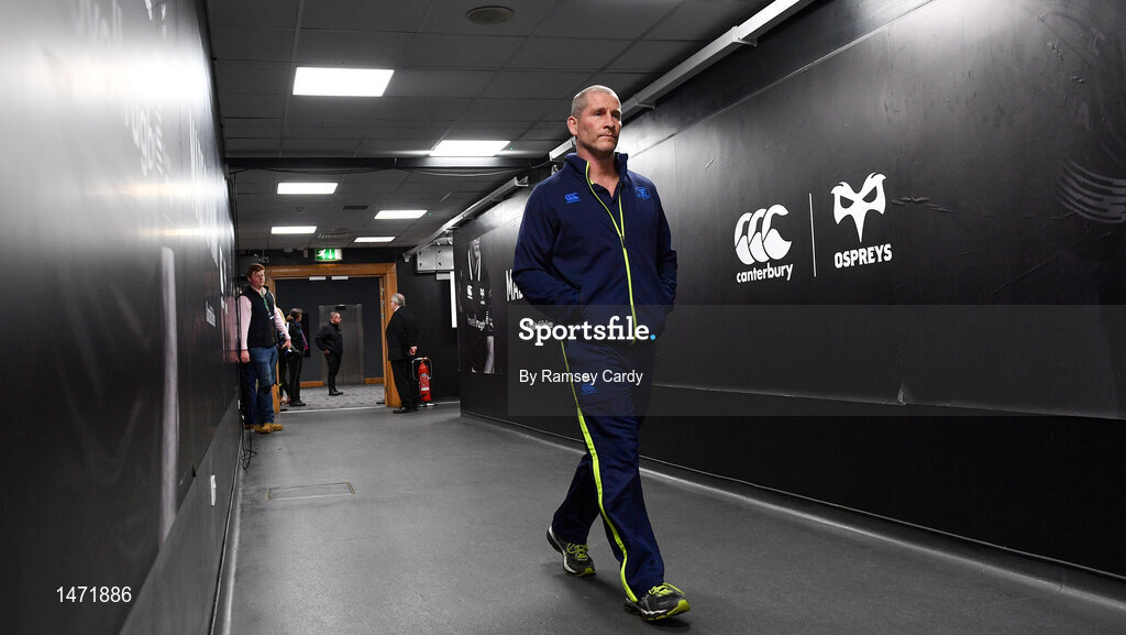 24 March 2018; Leinster senior coach Stuart Lancaster ahead of the Guinness PRO14 Round 18 match between Ospreys and Leinster at the Liberty Stadium in Swansea, Wales. Photo by Ramsey Cardy/Sportsfile