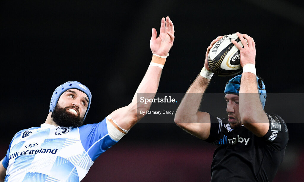 24 March 2018; Justin Tipuric of Ospreys wins possession in the lineout ahead of Scott Fardy of Leinster during the Guinness PRO14 Round 18 match between Ospreys and Leinster at the Liberty Stadium in Swansea, Wales. Photo by Ramsey Cardy/Sportsfile