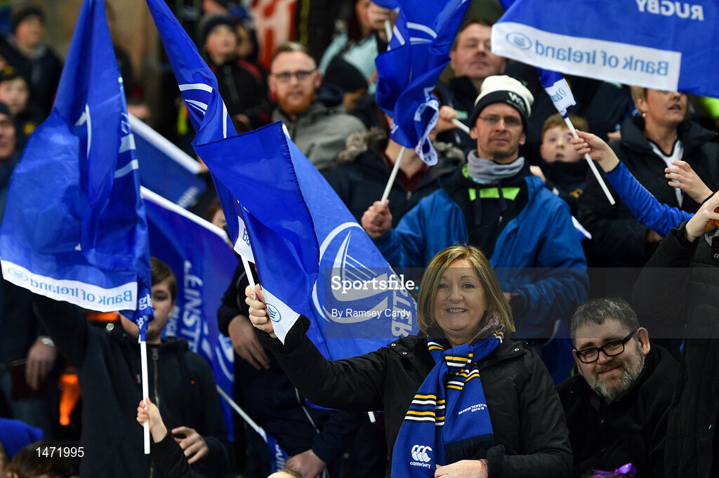 24 March 2018; Leinster supporters during the Guinness PRO14 Round 18 match between Ospreys and Leinster at the Liberty Stadium in Swansea, Wales. Photo by Ramsey Cardy/Sportsfile