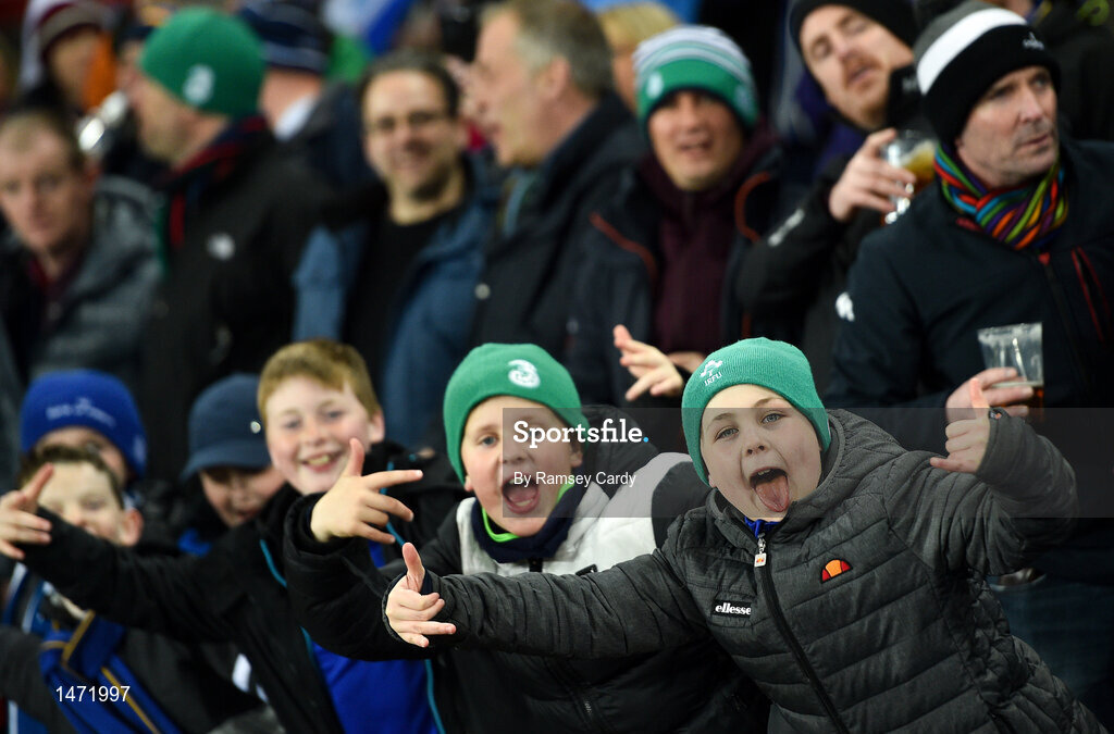 24 March 2018; Leinster supporters during the Guinness PRO14 Round 18 match between Ospreys and Leinster at the Liberty Stadium in Swansea, Wales. Photo by Ramsey Cardy/Sportsfile