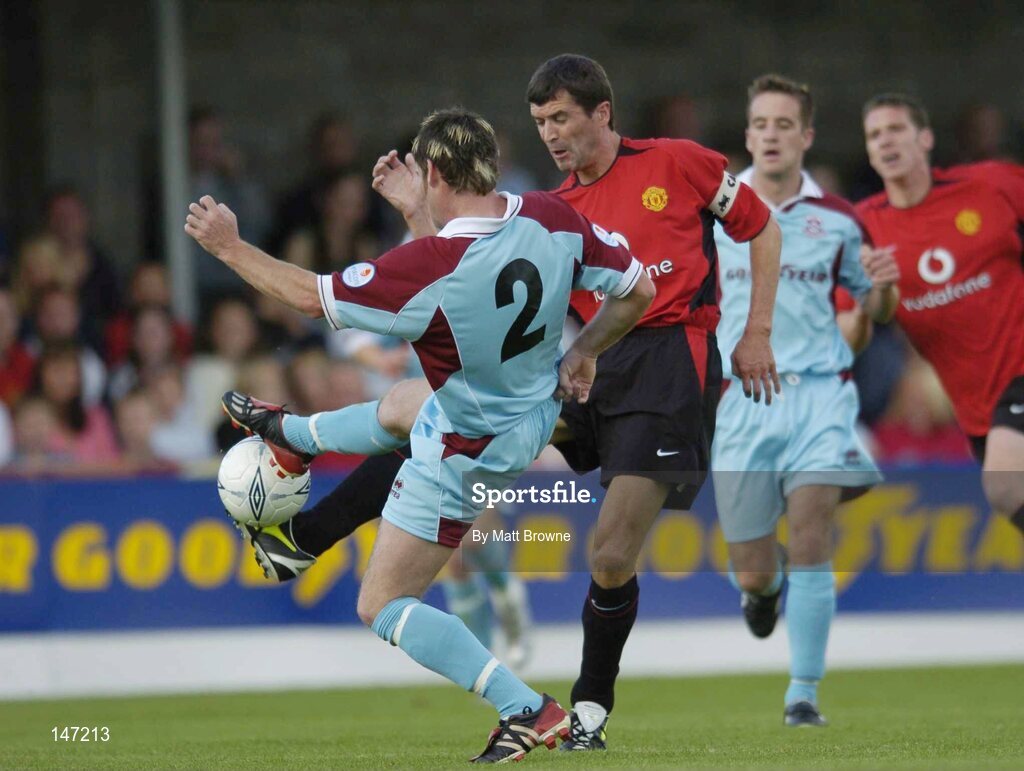 17 July 2004; Roy Keane, Manchester United XI, in action against John Meade, Cobh Ramblers. Friendly game, Cobh Ramblers v Manchester United XI, Turners Cross, Cork. Picture credit; Matt Browne / SPORTSFILE