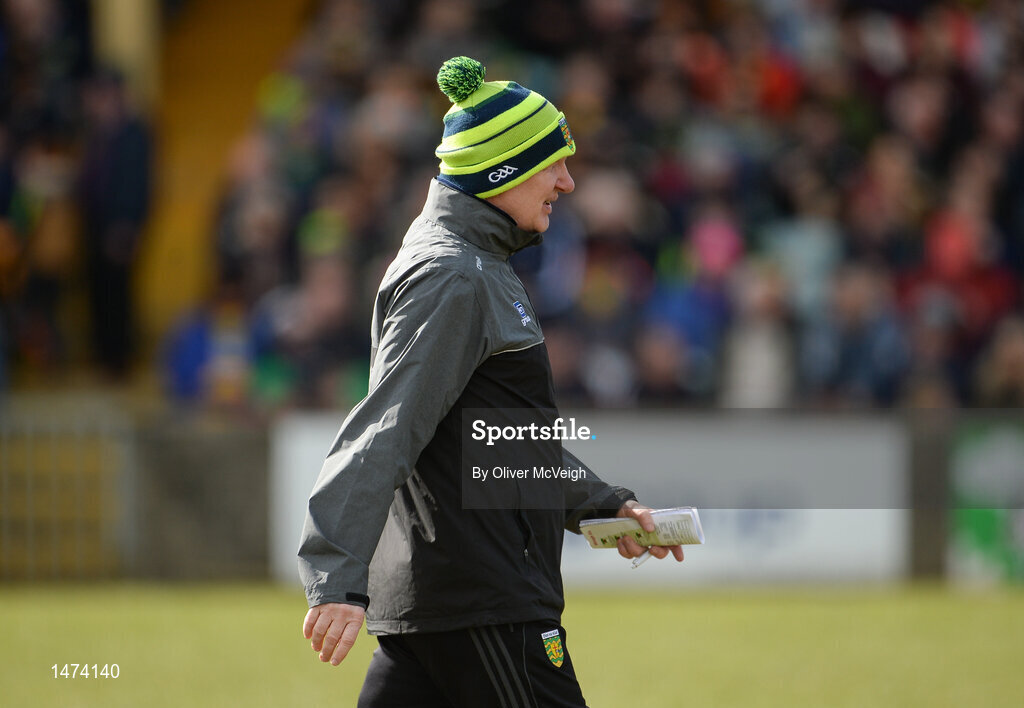 25 March 2018; Donegal manager Declan Bonner before the Allianz Football League Division 1 Round 7 match between Donegal and Mayo at MacCumhaill Park in Ballybofey, Donegal. Photo by Oliver McVeigh/Sportsfile