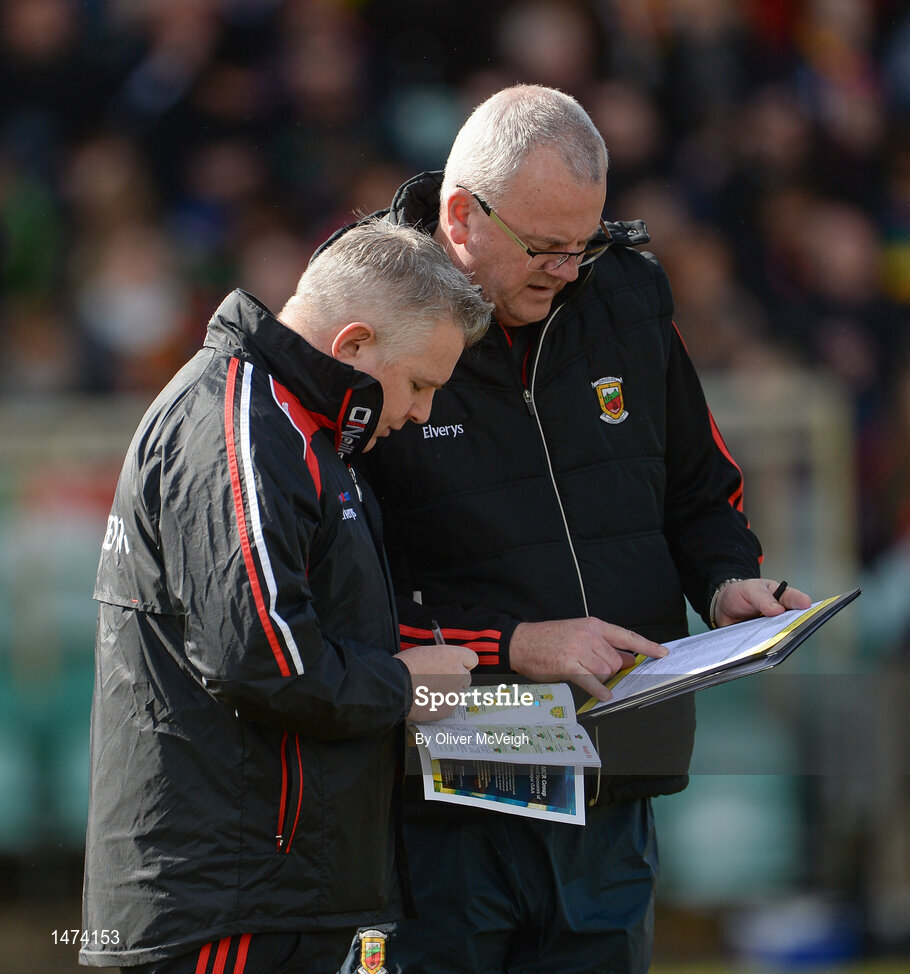 25 March 2018; Mayo Manager Stephen Rochford, left, along with Mayo County Board Secretary Dermot Butler before the Allianz Football League Division 1 Round 7 match between Donegal and Mayo at MacCumhaill Park in Ballybofey, Donegal. Photo by Oliver McVeigh/Sportsfile