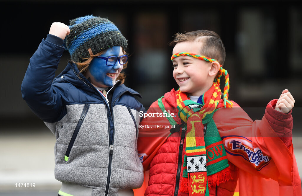 31 March 2018; Laois supporter James Brannagan, age 6, left, and Carlow supporter Jamie French, age 6, prior to the Allianz Football League Division 4 Final match between Carlow and Laois at Croke Park in Dublin. Photo by David Fitzgerald/Sportsfile