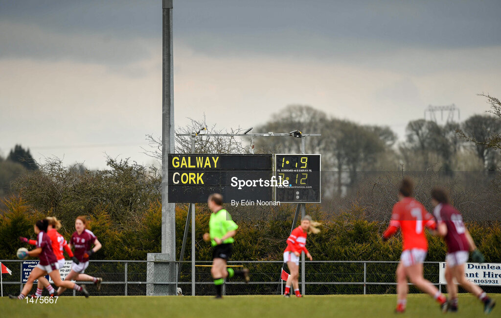 1 April 2018; A general view of the score board during the Lidl Ladies Football National League Division 1 Round 7 match between Galway and Cork at Clonberne GAA Pitch in Ballinasloe, Co Galway. Photo by Eóin Noonan/Sportsfile