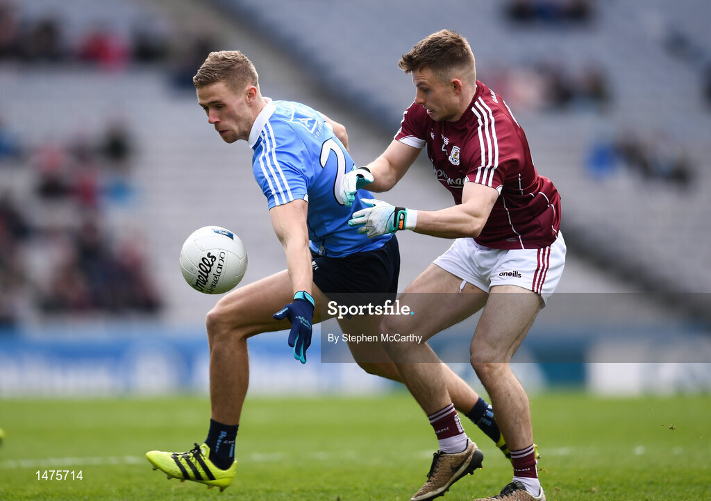 1 April 2018; Paul Mannion of Dublin in action against Eoghan Kerin of Galway during the Allianz Football League Division 1 Final match between Dublin and Galway at Croke Park in Dublin. Photo by Stephen McCarthy/Sportsfile