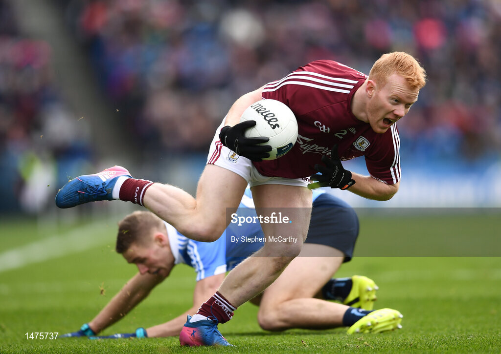 1 April 2018; Declan Kyne of Galway in action against Paul Mannion of Dublin during the Allianz Football League Division 1 Final match between Dublin and Galway at Croke Park in Dublin. Photo by Stephen McCarthy/Sportsfile