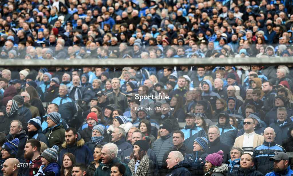 1 April 2018; Dublin supporters on Hill 16 prior to the Allianz Football League Division 1 Final match between Dublin and Galway at Croke Park in Dublin. Photo by Stephen McCarthy/Sportsfile