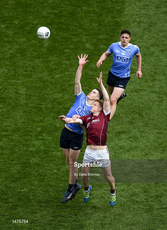 1 April 2018; Brian Fenton of Dublin in action against Ciarán Duggan of Galway during the Allianz Football League Division 1 Final match between Dublin and Galway at Croke Park in Dublin. Photo by Daire Brennan/Sportsfile