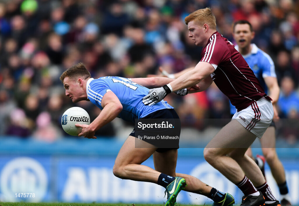 1 April 2018; Ciarán Kilkenny of Dublin in action against Seán Andy Ó Ceallaigh of Galway during the Allianz Football League Division 1 Final match between Dublin and Galway at Croke Park in Dublin. Photo by Piaras Ó Mídheach/Sportsfile