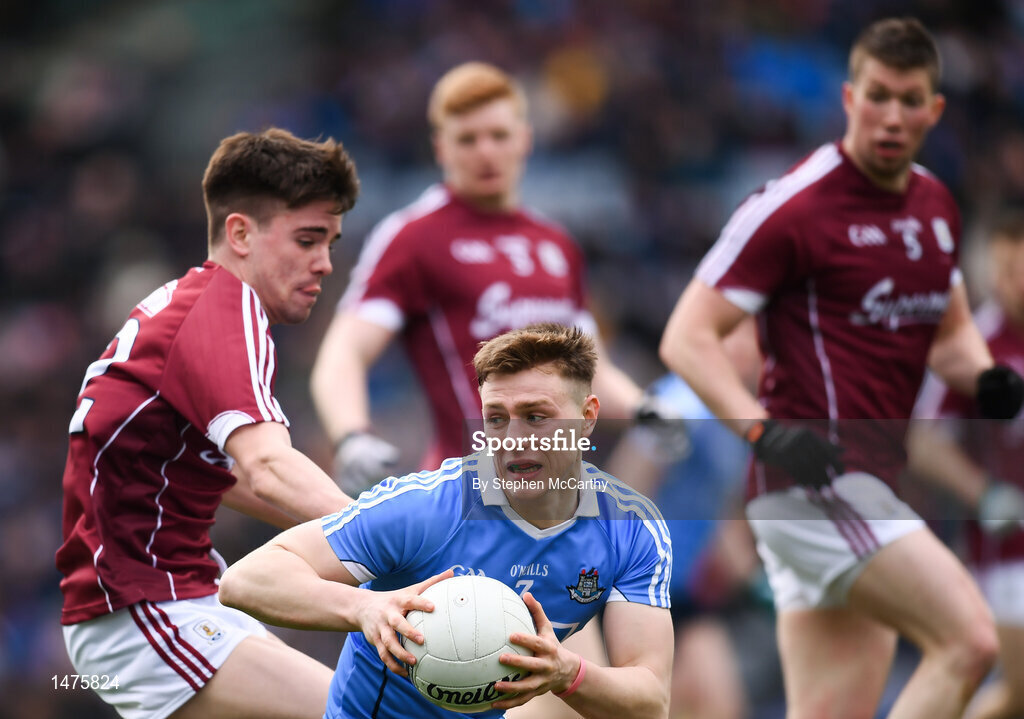 1 April 2018; John Small of Dublin in action against Seán Kelly of Galway during the Allianz Football League Division 1 Final match between Dublin and Galway at Croke Park in Dublin. Photo by Stephen McCarthy/Sportsfile