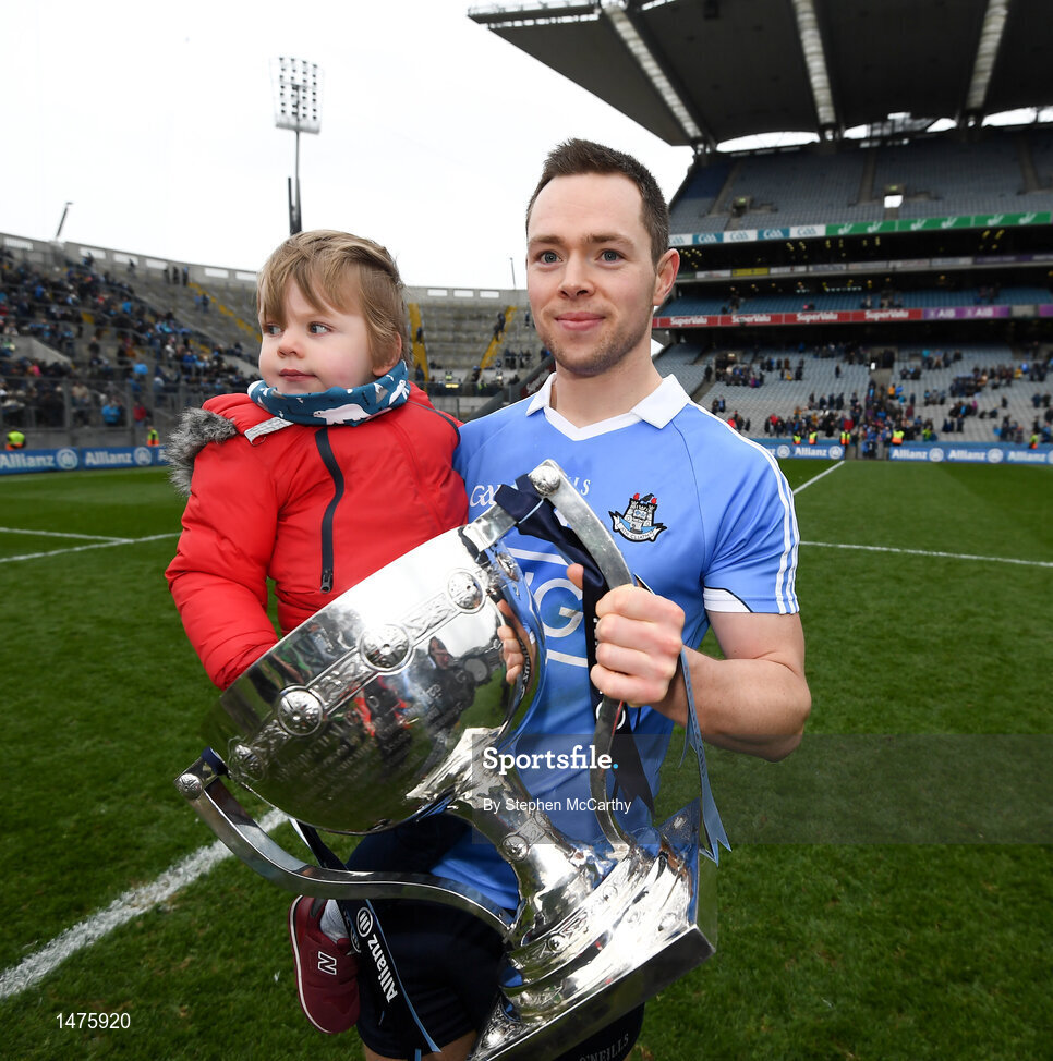 1 April 2018; Dean Rock of Dublin and his nephew Eli D'Arcy following the Allianz Football League Division 1 Final match between Dublin and Galway at Croke Park in Dublin. Photo by Stephen McCarthy/Sportsfile