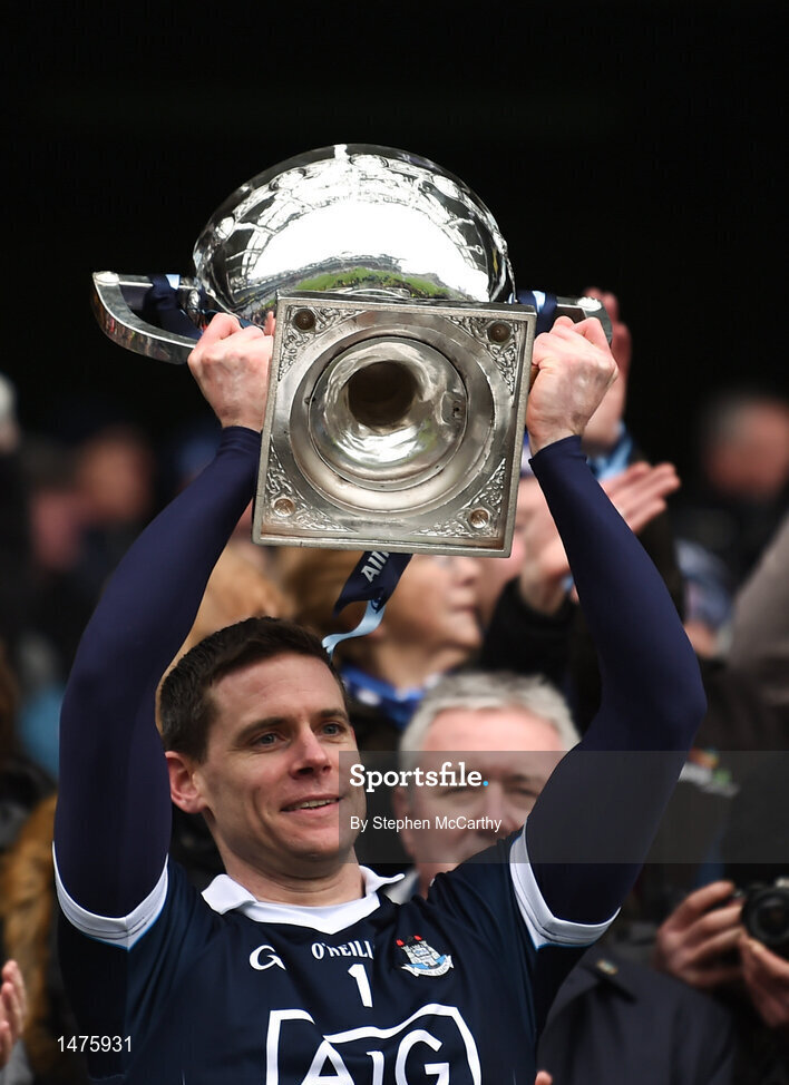1 April 2018; Dublin captain Stephen Cluxton lifts the cup following the Allianz Football League Division 1 Final match between Dublin and Galway at Croke Park in Dublin. Photo by Stephen McCarthy/Sportsfile