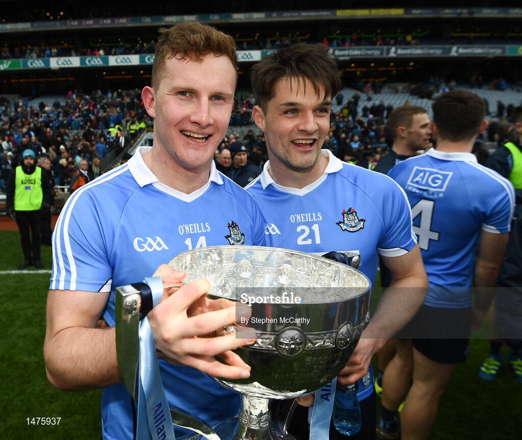 1 April 2018; Ciarán Kilkenny, left, and Eric Lowndes of Dublin following the Allianz Football League Division 1 Final match between Dublin and Galway at Croke Park in Dublin. Photo by Stephen McCarthy/Sportsfile