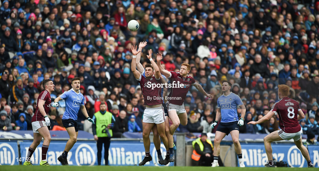 1 April 2018; Paul Conroy, left, and Ciarán Duggan of Galway in action against Brian Fenton of Dublin during the Allianz Football League Division 1 Final match between Dublin and Galway at Croke Park in Dublin. Photo by Daire Brennan/Sportsfile