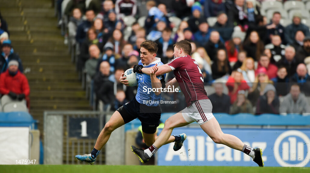 1 April 2018; Michael Fitzsimons of Dublin in action against Gareth Bradshaw of Galway during the Allianz Football League Division 1 Final match between Dublin and Galway at Croke Park in Dublin. Photo by Daire Brennan/Sportsfile