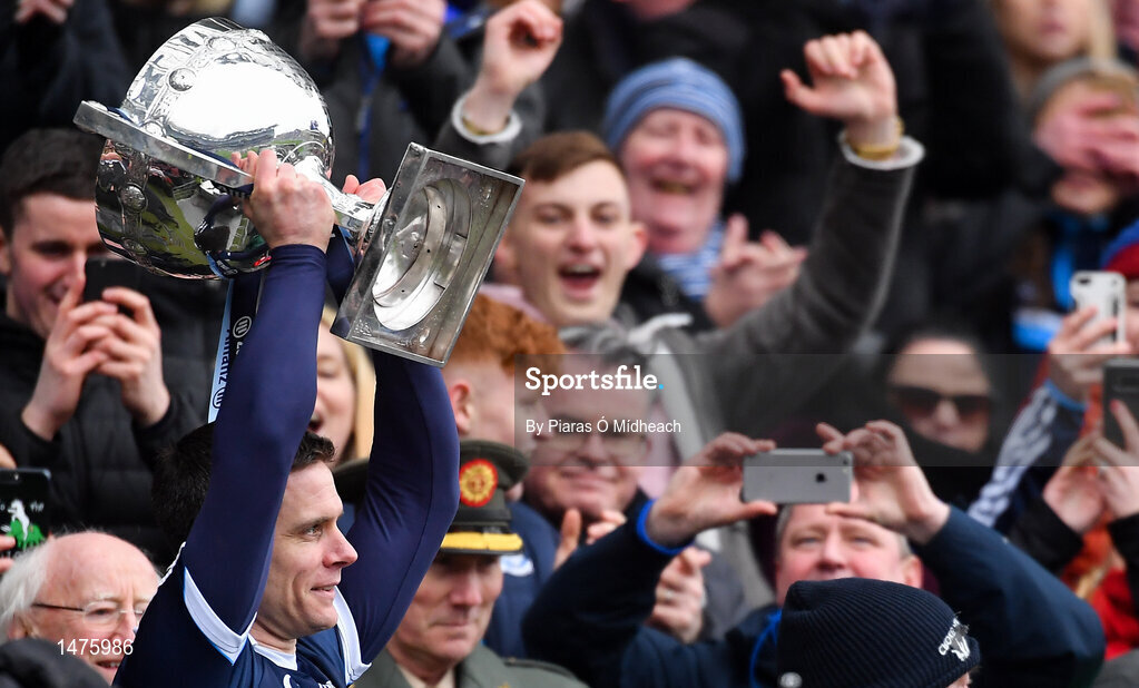 1 April 2018; Dublin captain Stephen Cluxton lifts the cup after the Allianz Football League Division 1 Final match between Dublin and Galway at Croke Park in Dublin. Photo by Piaras Ó Mídheach/Sportsfile