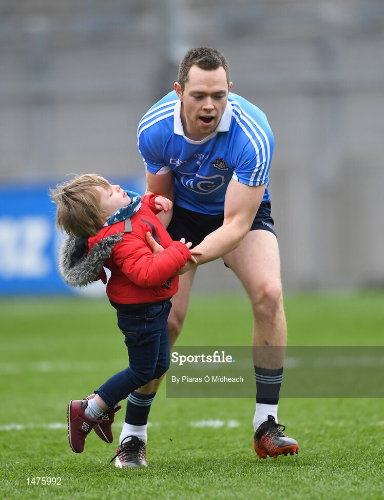 1 April 2018; Dean Rock of Dublin and his nephew Eli D'Arcy after the Allianz Football League Division 1 Final match between Dublin and Galway at Croke Park in Dublin. Photo by Piaras Ó Mídheach/Sportsfile