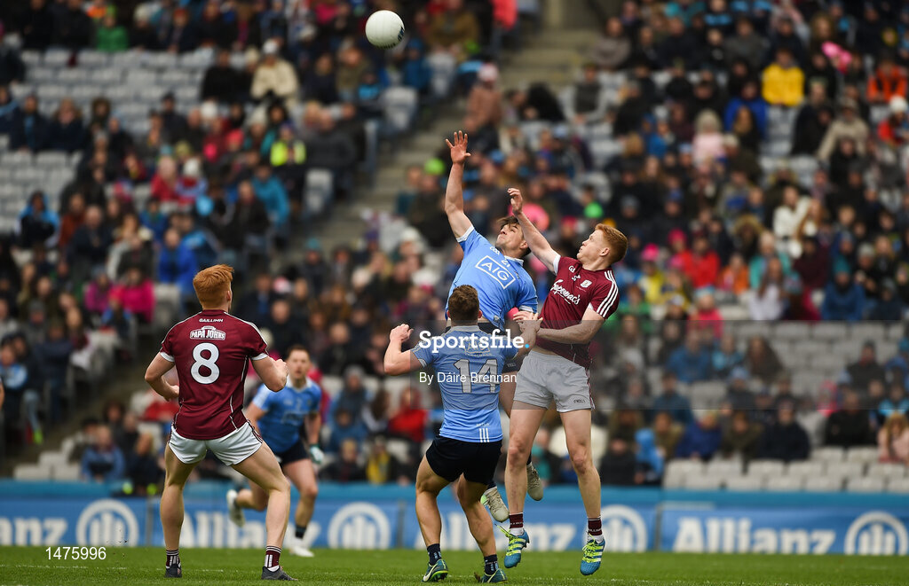 1 April 2018; Eric Lowndes of Dublin in action against Ciarán Duggan of Galway during the Allianz Football League Division 1 Final match between Dublin and Galway at Croke Park in Dublin. Photo by Daire Brennan/Sportsfile