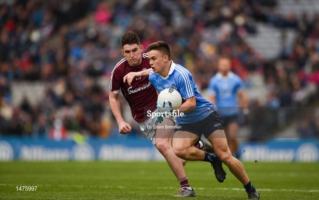 1 April 2018; Eoin Murchan of Dublin in action against Barry McHugh of Galway during the Allianz Football League Division 1 Final match between Dublin and Galway at Croke Park in Dublin. Photo by Daire Brennan/Sportsfile