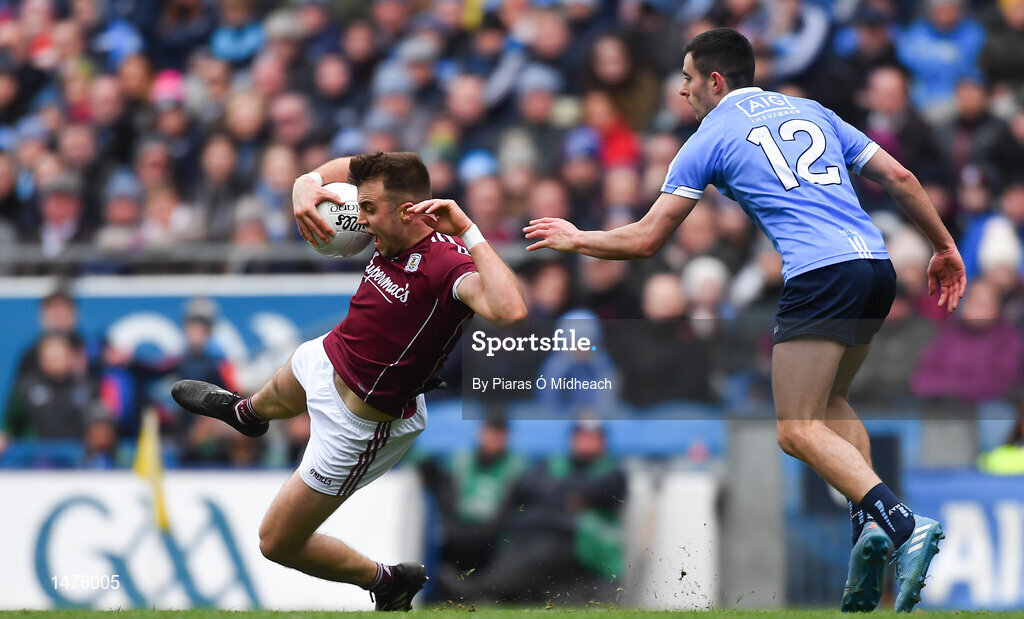 1 April 2018; Paul Conroy of Galway in action against Niall Scully of Dublin during the Allianz Football League Division 1 Final match between Dublin and Galway at Croke Park in Dublin. Photo by Piaras Ó Mídheach/Sportsfile