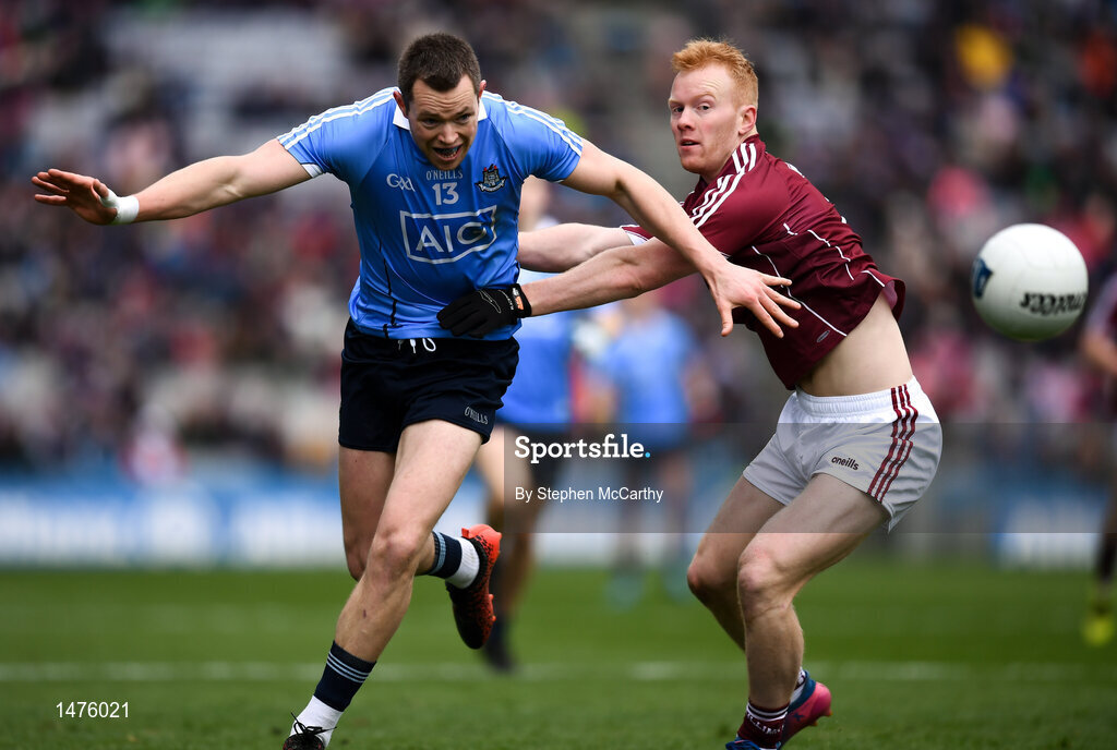 1 April 2018; Dean Rock of Dublin in action against Declan Kyne of Galway during the Allianz Football League Division 1 Final match between Dublin and Galway at Croke Park in Dublin. Photo by Stephen McCarthy/Sportsfile