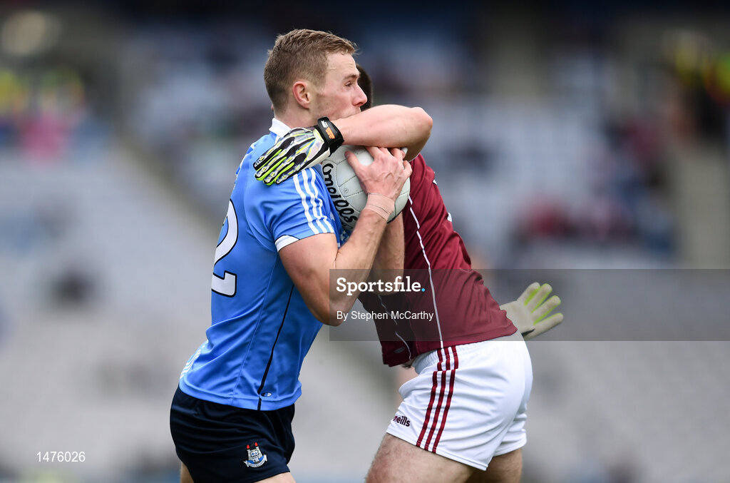 1 April 2018; Paul Mannion of Dublin in action against Cathal Sweeney of Galway during the Allianz Football League Division 1 Final match between Dublin and Galway at Croke Park in Dublin. Photo by Stephen McCarthy/Sportsfile