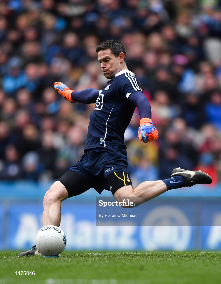 1 April 2018; Stephen Cluxton of Dublin takes a kick-out during the Allianz Football League Division 1 Final match between Dublin and Galway at Croke Park in Dublin. Photo by Piaras Ó Mídheach/Sportsfile
