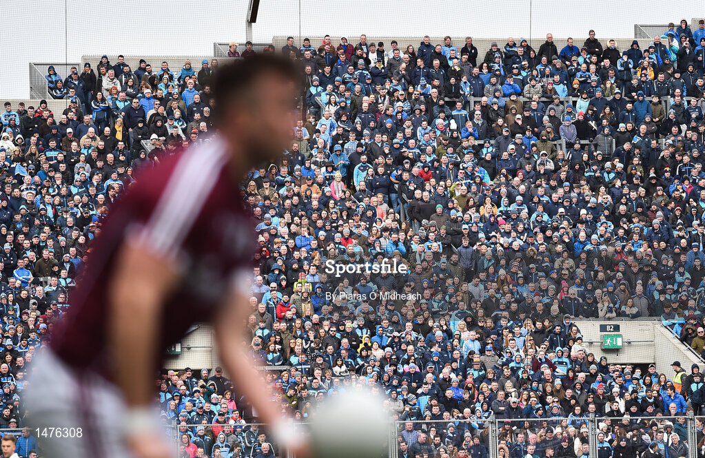 1 April 2018; A general view of Hill 16 as Paul Conroy of Galway prepares to handpass during the Allianz Football League Division 1 Final match between Dublin and Galway at Croke Park in Dublin. Photo by Piaras Ó Mídheach/Sportsfile