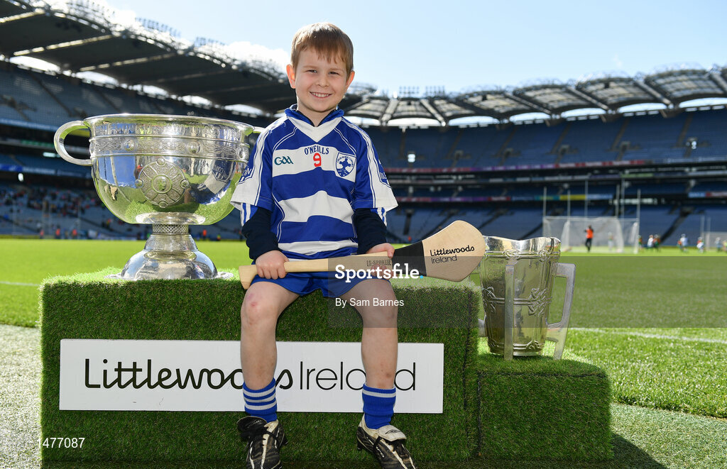 3 April 2018; Players from Blessington GAA, Co Wicklow, pictured with the Sam Maguire and Liam MacCarthy Trophies during Day 1 of the The Go Games Provincial days in partnership with Littlewoods Ireland at Croke Park in Dublin. Photo by Sam Barnes/Sportsfile