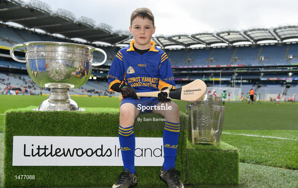 3 April 2018; Players from Kilkerley Emmets GAA, Co Louth pictured with the Sam Maguire and Liam MacCarthy Trophies during Day 1 of the The Go Games Provincial days in partnership with Littlewoods Ireland at Croke Park in Dublin. Photo by Sam Barnes/Sportsfile