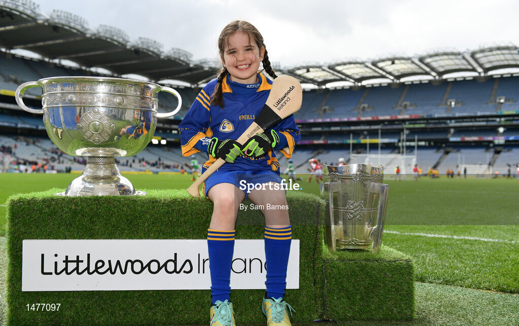 3 April 2018; Players from Kilkerley Emmets GAA, Co Louth pictured with the Sam Maguire and Liam MacCarthy Trophies during Day 1 of the The Go Games Provincial days in partnership with Littlewoods Ireland at Croke Park in Dublin. Photo by Sam Barnes/Sportsfile