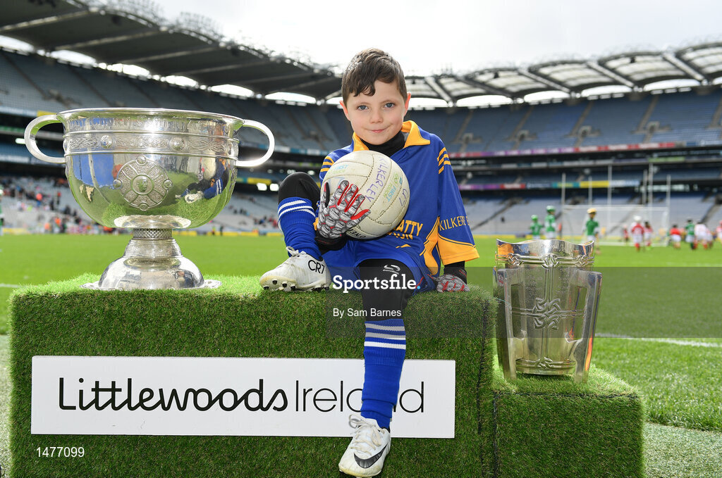 3 April 2018; Players from Kilkerley Emmets GAA, Co Louth pictured with the Sam Maguire and Liam MacCarthy Trophies during Day 1 of the The Go Games Provincial days in partnership with Littlewoods Ireland at Croke Park in Dublin. Photo by Sam Barnes/Sportsfile
