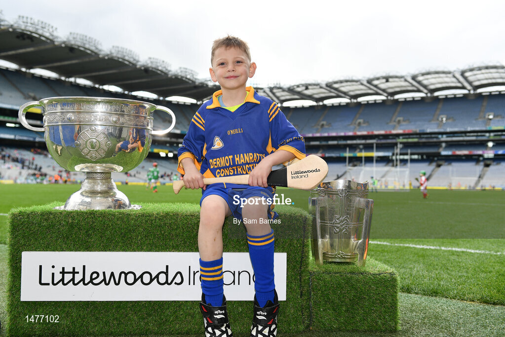 3 April 2018; Players from Kilkerley Emmets GAA, Co Louth pictured with the Sam Maguire and Liam MacCarthy Trophies during Day 1 of the The Go Games Provincial days in partnership with Littlewoods Ireland at Croke Park in Dublin. Photo by Sam Barnes/Sportsfile