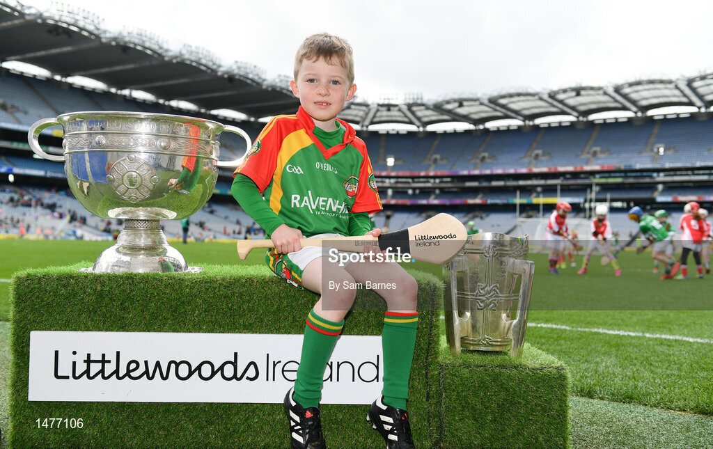 3 April 2018; Players from Ballinamere GAA, Co Offaly, pictured with the Sam Maguire and Liam MacCarthy Trophies during Day 1 of the The Go Games Provincial days in partnership with Littlewoods Ireland at Croke Park in Dublin. Photo by Sam Barnes/Sportsfile