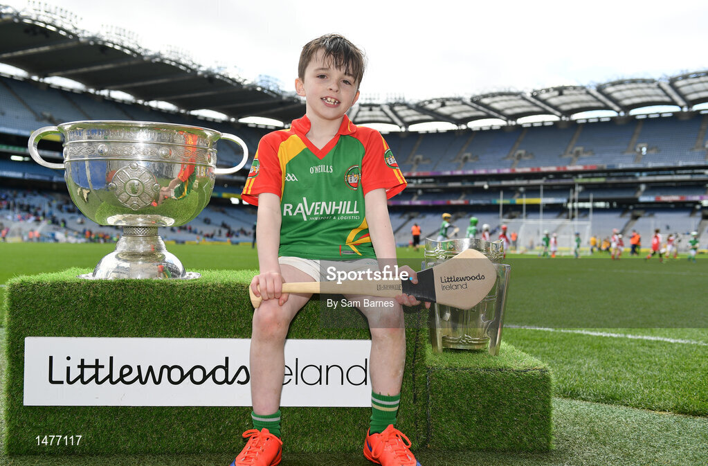 3 April 2018; Players from Ballinamere GAA, Co Offaly, pictured with the Sam Maguire and Liam MacCarthy Trophies during Day 1 of the The Go Games Provincial days in partnership with Littlewoods Ireland at Croke Park in Dublin. Photo by Sam Barnes/Sportsfile