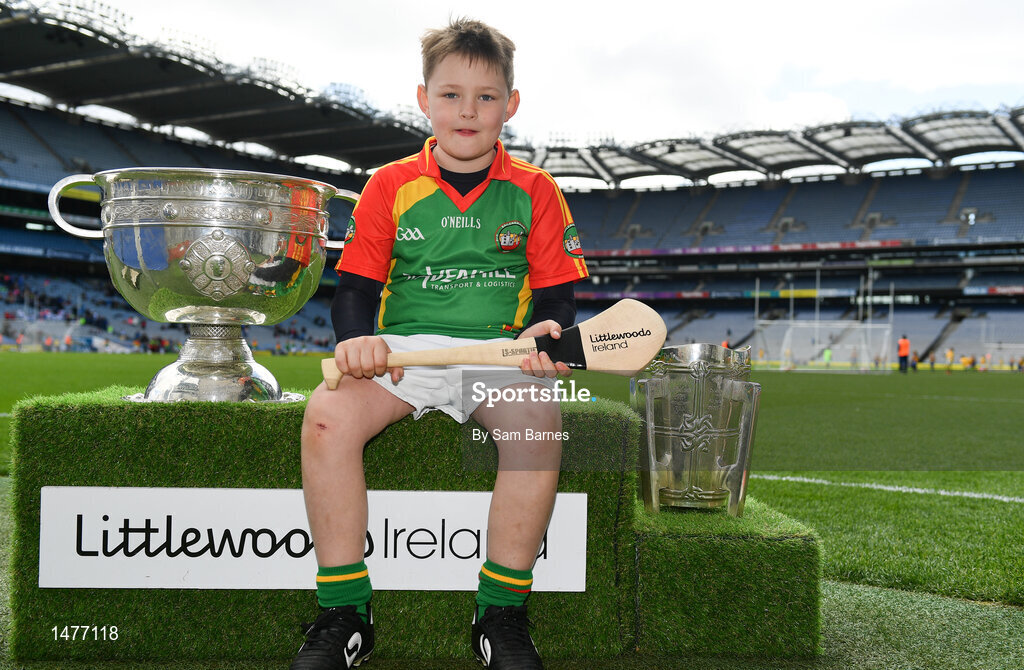 3 April 2018; Players from Ballinamere GAA, Co Offaly, pictured with the Sam Maguire and Liam MacCarthy Trophies during Day 1 of the The Go Games Provincial days in partnership with Littlewoods Ireland at Croke Park in Dublin. Photo by Sam Barnes/Sportsfile