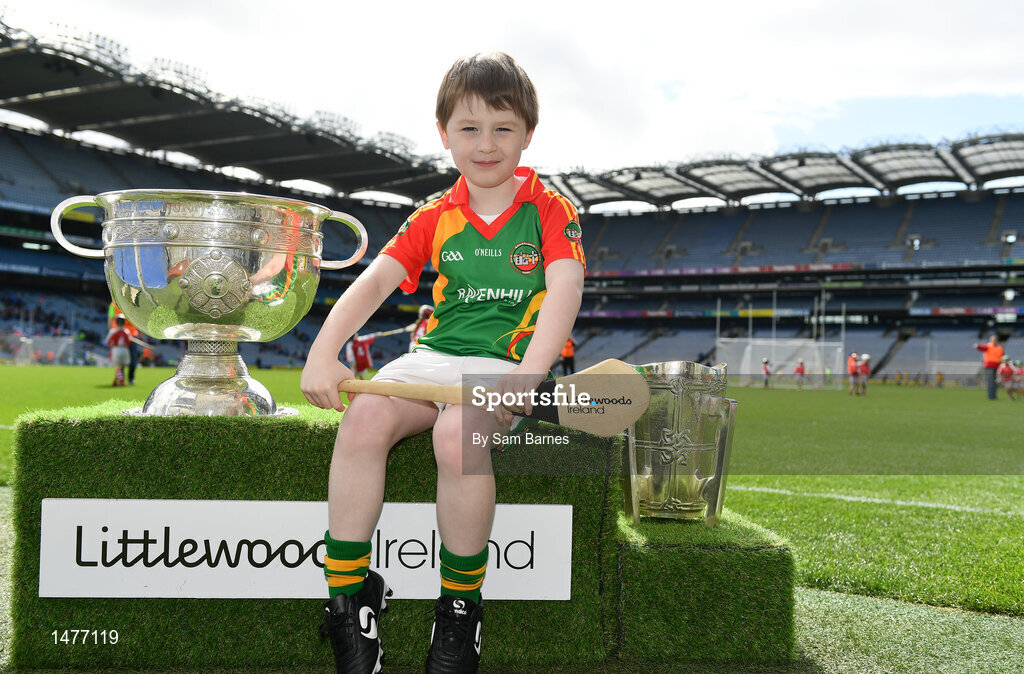 3 April 2018; Players from Ballinamere GAA, Co Offaly, pictured with the Sam Maguire and Liam MacCarthy Trophies during Day 1 of the The Go Games Provincial days in partnership with Littlewoods Ireland at Croke Park in Dublin. Photo by Sam Barnes/Sportsfile