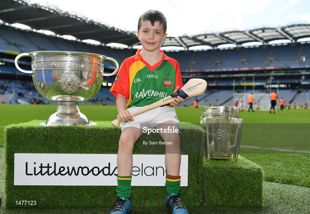 3 April 2018; Players from Ballinamere GAA, Co Offaly, pictured with the Sam Maguire and Liam MacCarthy Trophies during Day 1 of the The Go Games Provincial days in partnership with Littlewoods Ireland at Croke Park in Dublin. Photo by Sam Barnes/Sportsfile