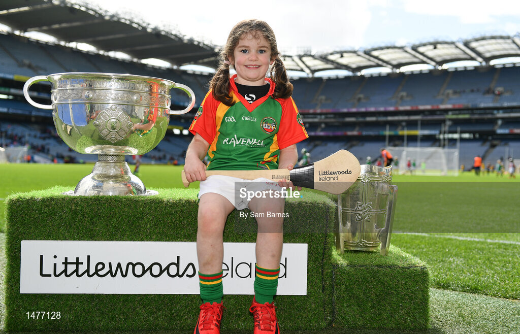 3 April 2018; Players from Ballinamere GAA, Co Offaly, pictured with the Sam Maguire and Liam MacCarthy Trophies during Day 1 of the The Go Games Provincial days in partnership with Littlewoods Ireland at Croke Park in Dublin. Photo by Sam Barnes/Sportsfile