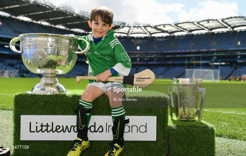 3 April 2018; Players from St Mullins, Co Carlow, pictured with the Sam Maguire and Liam MacCarthy Trophies during Day 1 of the The Go Games Provincial days in partnership with Littlewoods Ireland at Croke Park in Dublin. Photo by Sam Barnes/Sportsfile