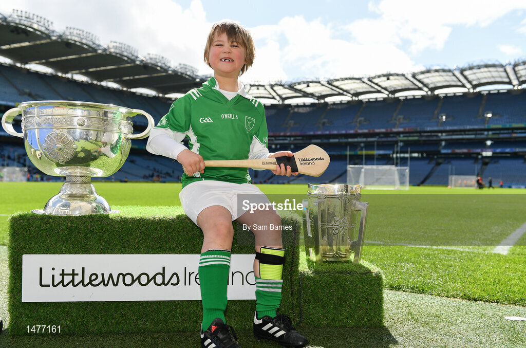 3 April 2018; Players from St Mullins, Co Carlow, pictured with the Sam Maguire and Liam MacCarthy Trophies during Day 1 of the The Go Games Provincial days in partnership with Littlewoods Ireland at Croke Park in Dublin. Photo by Sam Barnes/Sportsfile
