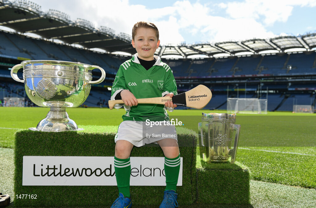 3 April 2018; Players from St Mullins, Co Carlow, pictured with the Sam Maguire and Liam MacCarthy Trophies during Day 1 of the The Go Games Provincial days in partnership with Littlewoods Ireland at Croke Park in Dublin. Photo by Sam Barnes/Sportsfile