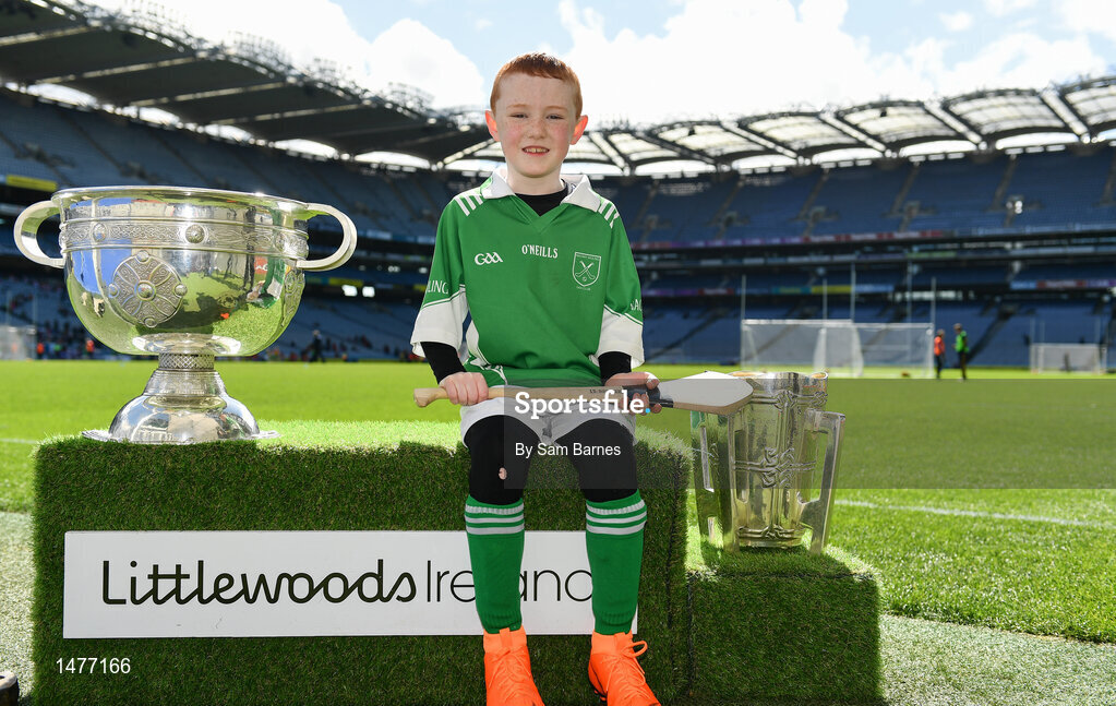 3 April 2018; Players from St Mullins, Co Carlow, pictured with the Sam Maguire and Liam MacCarthy Trophies during Day 1 of the The Go Games Provincial days in partnership with Littlewoods Ireland at Croke Park in Dublin. Photo by Sam Barnes/Sportsfile