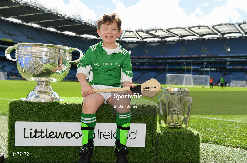 3 April 2018; Players from St Mullins, Co Carlow, pictured with the Sam Maguire and Liam MacCarthy Trophies during Day 1 of the The Go Games Provincial days in partnership with Littlewoods Ireland at Croke Park in Dublin. Photo by Sam Barnes/Sportsfile