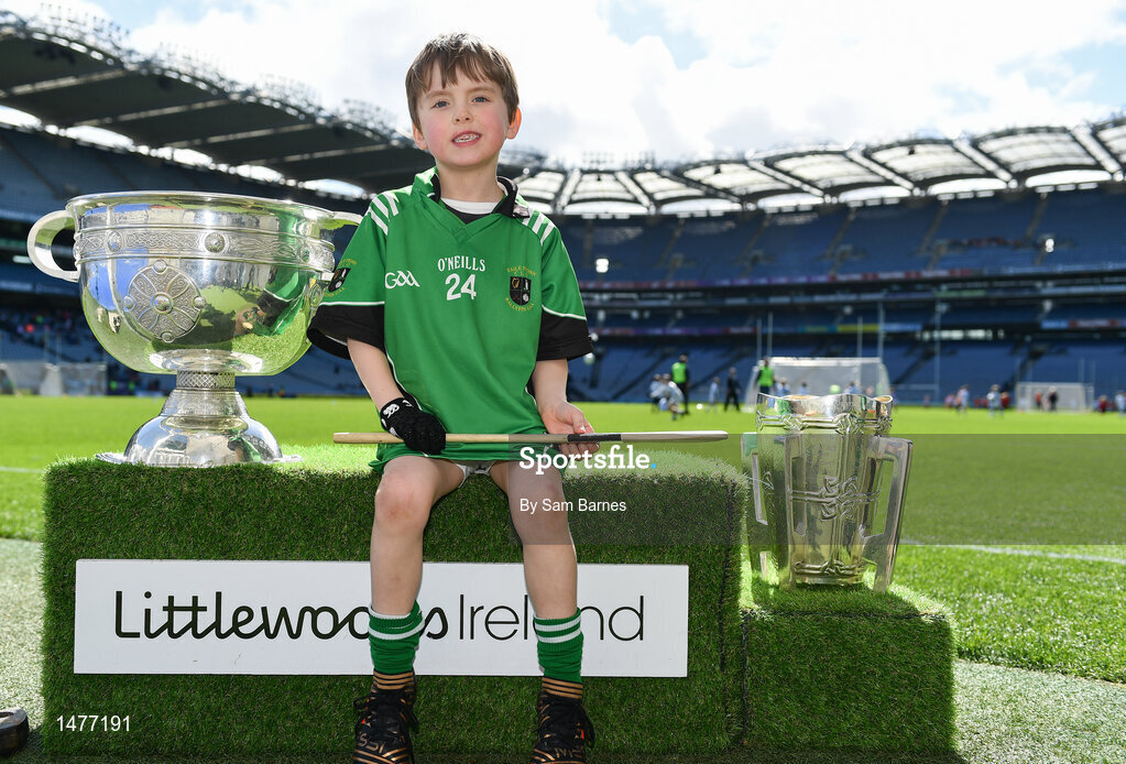 3 April 2018; Players from Ballyfin GAA, Co Laois pictured with the Sam Maguire and Liam MacCarthy Trophies during Day 1 of the The Go Games Provincial days in partnership with Littlewoods Ireland at Croke Park in Dublin. Photo by Sam Barnes/Sportsfile