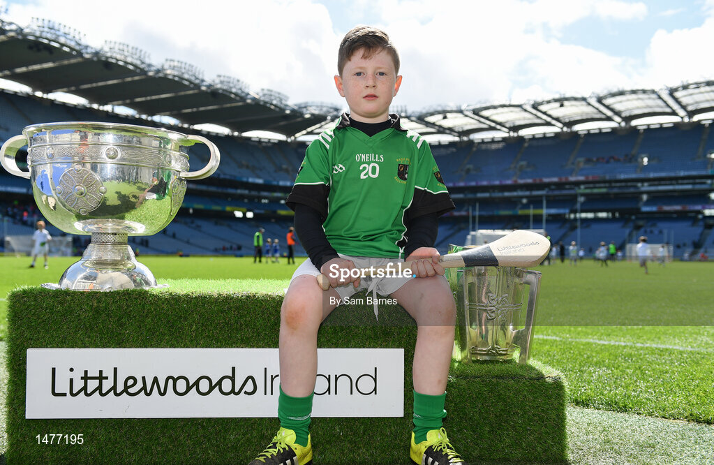 3 April 2018; Players from Ballyfin GAA, Co Laois pictured with the Sam Maguire and Liam MacCarthy Trophies during Day 1 of the The Go Games Provincial days in partnership with Littlewoods Ireland at Croke Park in Dublin. Photo by Sam Barnes/Sportsfile